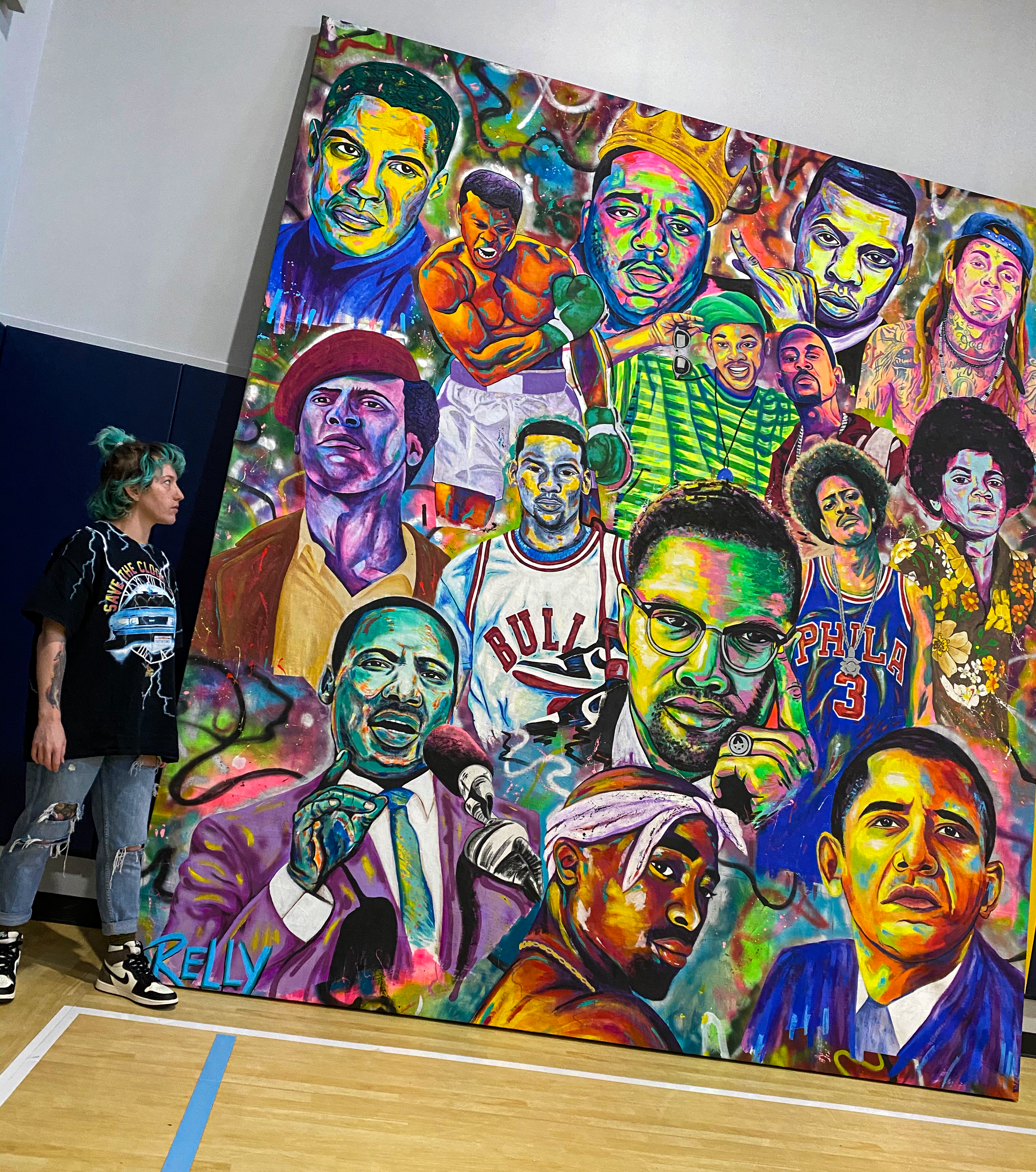 Ginger has finished multiple commissions in the last few months ranging in different mediums. Ginger has recently partnered with Remy Martin Cognac to hand paint 52 pairs of shoes for Indy All Star Weekend 2024. She has partnered with the Indiana State Fair to paint a mural for the Indiana Farm Bureau Pavilion, as well as Dominos. She rarely does the same thing twice, becoming adaptable and growing even more.
